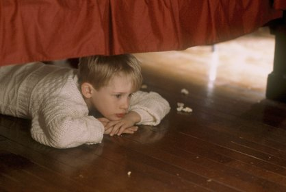 За кулисами съёмок первого фильма было немало трюков и моментов, которые стали предметом обсуждений. Сценические «ловушки», расставленные для воров Гарри и Марва (в исполнении Джо Пеши и Дэниела Стерна), выглядели смешно и изобретательно, но многие из них требовали сложной работы гримёров и каскадёров. Для создания эффектов использовались как специальные механизмы, так и тщательно продуманные реквизиты, чтобы избежать травм и создать безопасную среду для актёров. Тем не менее некоторые сцены были настолько правдоподобны, что зрители долго спорили, насколько «реальны» травмы персонажей и сколько в кадре трюка, а сколько — мастерства актёров.